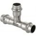 (VTi.931.I) Трехраструбный пресс-тройник из нержавеющей стали обеспечивает соединение трех тонкостенных стальных труб систем водоснабжения, отопления, иных инженерных и технологических установок с рабочей температурой до 120 °С и давлением до 16 бар. Изделие изготовлено из стали AISI 304. Материал уплотнительных колец – эластомер EPDM. Отдельно можно приобрести уплотнительные кольца из FPM (витон); в этом случае максимальная рабочая температура увеличивается до 140 °С.